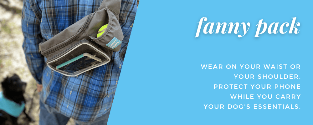 Worn as a waistbag or across your chest, this pack protects your phone in a clear zippered pocket for easy call screening. Includes poop bag dispenser, tennis ball pocket and two zippered pockets for your items.