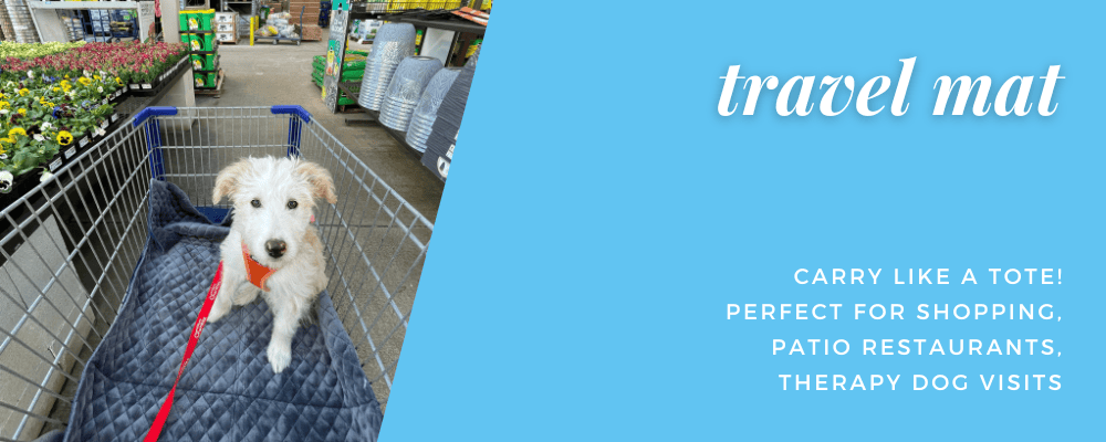 Our YUCKY PUPPY Folding Travel Dog Mat is perfect as a settle mat for your dog during patio restaurant visits, hotel stays or while doing therapy dog work--or for protecting your dog's paws in a shopping cart.
